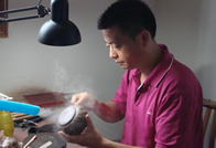 簡介:近天青泥色調,玩家易感迷惑,常誤云"綠泥",綠泥者,澹草綠色也;"本山綠泥者緞泥之原礦矣,泥色青藍略泛綠光而(無灰色調),始稱"墨綠泥"。窯溫:約1120度。收縮比:約14%。礦產地:江蘇宜興丁山、黃龍山。泥性:黏性佳,張力尚可,細膩密實;製壺光、花均宜;為優質泥礦,產量不豐。難度:較易變形,對窯溫要求高,窯溫足則色澤溫潤,不足則色嫩枯燥,原料收集不易,練製困難與繁複。特點:泥色特異,青藍色中略泛綠光,清秀獨特;稍一泡養,色調更形穩實,溫潤透明,變化甚巨,玩賞深具成就感。沖茗特性:茶性溫順滑膩,味香凝聚,沖泡時間易掌控,能以輕鬆心情泡杯好茶,實為品茗之最佳幫手。沖泡建議:普洱茶系列,鐵觀音及半發酵類茶,重發酵茶類(黑茶類),輕焙火烏龍茶,綠茶,龍井,紅茶等。